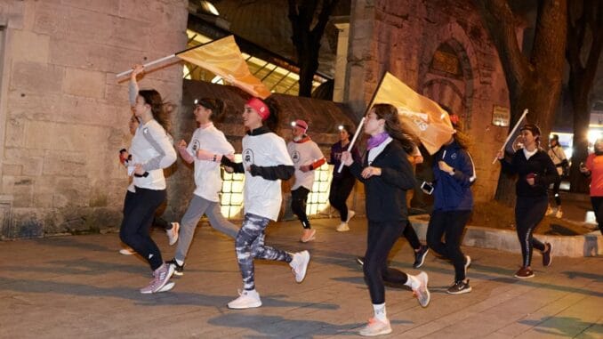 Neon stciker’lar, bileklikler ve reflektörlü tişörtlerle koşan kadınlar, “gece biz de varız” diyerek renkli bir geceye imza attılar.