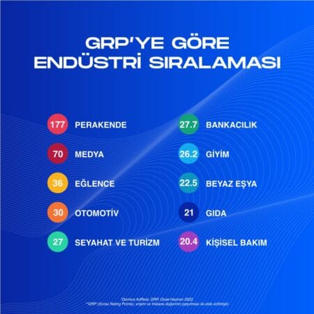 Her ay GRP şampiyonlarını paylaşan Gemius, ilk 6 aylık süreçte GRP’ye göre Endüstri Sıralaması yaparak bu alanda öne çıkan sektörleri belirledi. Gemius Adreal’in verilerine göre 177K ile perakende sektörü açık ara öne çıkarken, medya sektörünün de 70K ile ikinci sırada yer aldığı görülüyor.