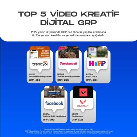 Gemius Adreal, 2022 yılının ilk yarısında GRP baz alınarak yapılan sıralamada ilk 5’te yer alan video kreatifleri de belirledi.