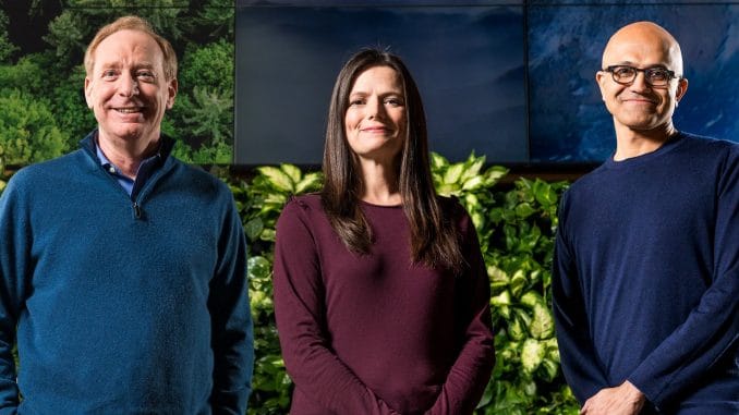 Microsoft, önümüzdeki on yıl içinde “karbon negatif” şirket olma hedefini açıkladı. Microsoft CEO’su Satya Nadella, Başkanı Brad Smith ve Finans Direktörü Amy Hood, çevreye duyarlı teknolojilerin geliştirilmesine yardımcı olmak için 1 milyar dolar yatırım yapacaklarını duyurdu. Oluşturulacak olan İklim İnovasyonu Fonu’yla 2030 yılında karbon ayak izini ortadan kaldırma konusunda iddialı bir taahhütte bulunan Microsoft, 2050 yılında ise kurulduğundan bu güne kadar yaydığı tüm karbon miktarını sıfırlamanın da ötesine geçmeyi hedefliyor.
