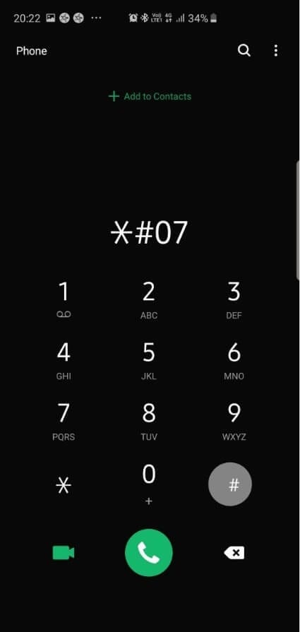 - Şimdi * # 07 # kodunu yazın ve arama tuşuna basın