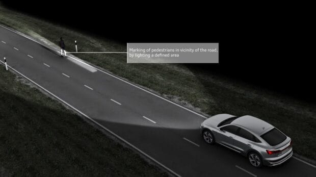Digital Matrix LED farlardaki işaretleme aydınlatması, karanlıkta yolun yakınındaki yayaların algılanmasına yardımcı oluyor. Otomobilin önünde olduklarında gece görüş asistanı durumu algılıyor ve işaretleme aydınlatması kişiyi vurguluyor. Böylece sürüş hem sürücü, hem de diğer trafik paydaşları için daha güvenli hale geliyor.