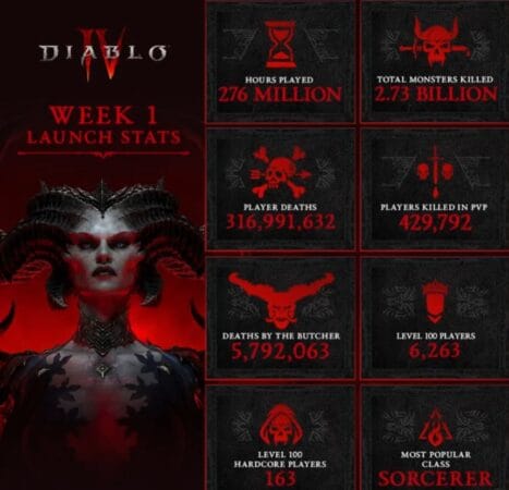 Diablo IV ilk haftasında “Süper Mario Kardeşler Filmi” çıkış haftasındaki gişe satış rakamlarını aştı. Oyuncular, Blizzard Entertainment’ın şimdiye kadarki en hızlı satan oyununu şimdiden 276 milyon saatten fazla oynadı.