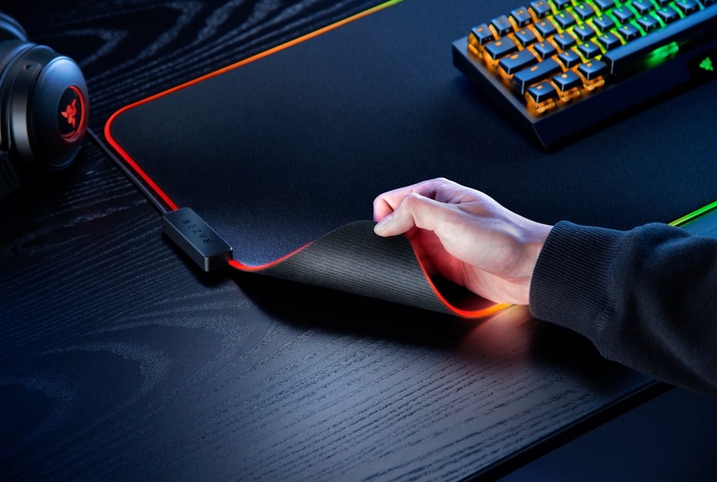 Razer Strider Chroma, genişletilmiş boyutta Razer Chroma RGB ile dünyanın ilk hibrit oyun faresi matı iken Razer Goliathus Chroma 3XL, ultra büyük 3XL boyutunda olan ve Razer Chroma RGB ile desteklenen yumuşak oyun fare altlığıdır.