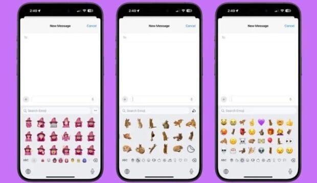 Mesajlar’da emoji, Memoji ve çıkartmalar, ekranın altındaki küçük simgeler kullanılarak gezilebilen tek bir arayüzde birleştirildi. Çıkartmalara veya Memoji’lere ulaşmak için dokunabileceğiniz simgeler var ve belirli karakterleri ve pozları daha hızlı bulmak için Memoji’leriniz arasında gezinebilirsiniz.