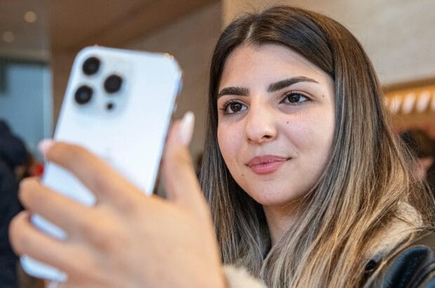 Randevu bulamadığı için sabahın erken saatlerinde sıraya giren Ayşenur Kaya, iPhone 11’den iPhone 14 Pro Max’e geçiş yapıyor. Sosyal medyada içerik üreticisi olan Ayşenur, işi için kaliteli fotoğraf ve video çekmenin önemli olduğunu söylüyor. Yeni Hareket Modu ile keyifli içerikler üreteceğini düşünen Ayşenur iPhone 14 Pro Max’ini denemek için sabırsızlandığını belirtiyor.