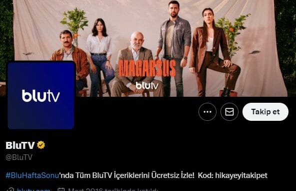 Bu haftasonu etkiketi ile de blutv içeriklerinin tanıtımları sosyal medya hesabından yapılmaya devam ediyor.