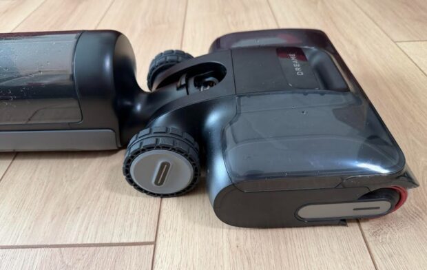 Bu özel süpürge, yerleri temizlemek için dahili bir paspasla birlikte geliyor ve 2’si 1 arada ıslak ve kuru temizlik yapabiliyor. Yani ayrı ayrı süpürme ve paspas yapma derdi olmadan, bu makineyle her şeyi tek bir geçişte yapabiliyorsunuz. Çok pratik değil mi? Bence kesinlikle öyle. Kirli su tankı orta kısımda, temiz su tankı ise doğrudan rolunun hemen üzerinde konumlandırılmış. Temiz su tankını doldurmak istediğimizde elimizle hafifçe ilgili noktadan tutuyoruz ve kendimize doğru çekiyoruz. Ardından Dreame’nin solüsyonunu kullanarak temiz su tankını doldurabiliriz.