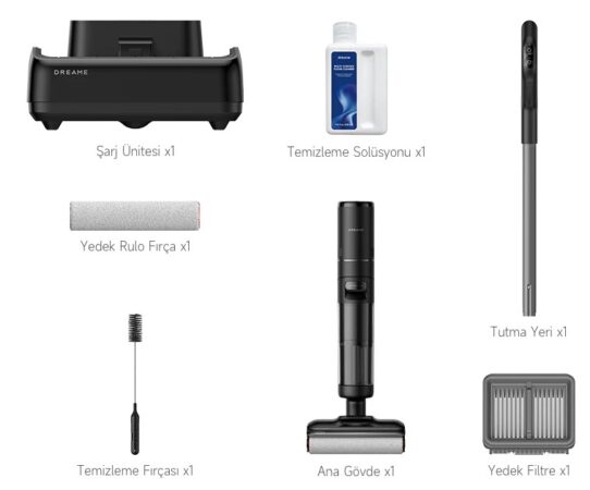 Temiz su tankından bahsetmişken ufak bir uyarı da yapmak isterim: Arkadaşlar bu temiz su tankına herhangi bir tip deterjan koymayın, nasılsa suyun içine katıyorum aynı şey demeyin. Kesinlikle önermiyorum. Çünkü köpüren türden deterjanlar bu ürüne zarar verebilir. O yüzden kutu içeriğinde de olan 500 ml’lik Dreame solüsyonu kullanmanızı öneririm. Bittiğinde Dreame’nin web sitesine girerek de solüsyon dahil ihtiyacınız olan herhangi bir Dreame çözümünü de yine bu siteden bulabilirsiniz.