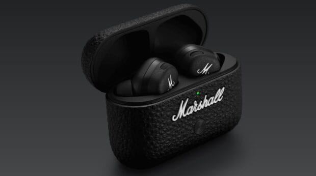 Bu küçük kulakların siyah tasarımı, Marshall’ın ayırt edici beyaz “M “si ile dikkat çekici görünüyor. Şarj kutusunun üzerinde Marshall logosu görüyoruz ve ayrıca kulaklık saplarında da Marshall’ın imzası var. Sapları tırtıklı bir yapıda bu da iyi bir tutuş sağlıyor. Sapların ucu ise bakır renkli ve oldukça hoş görünüyor.